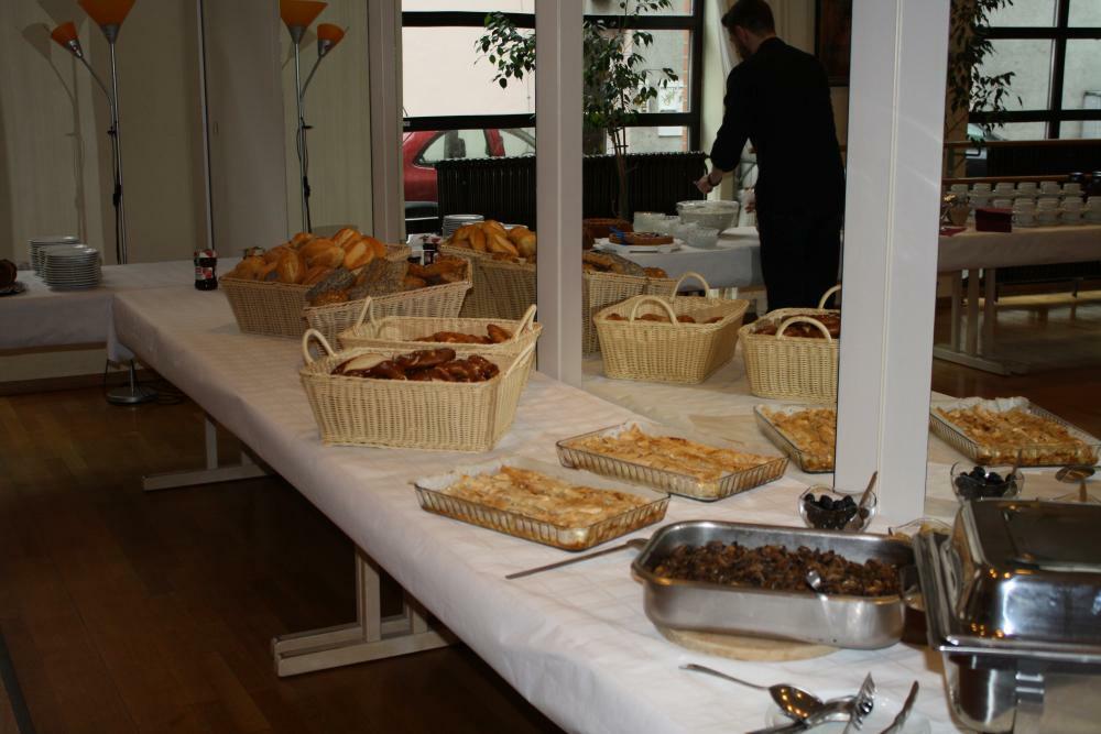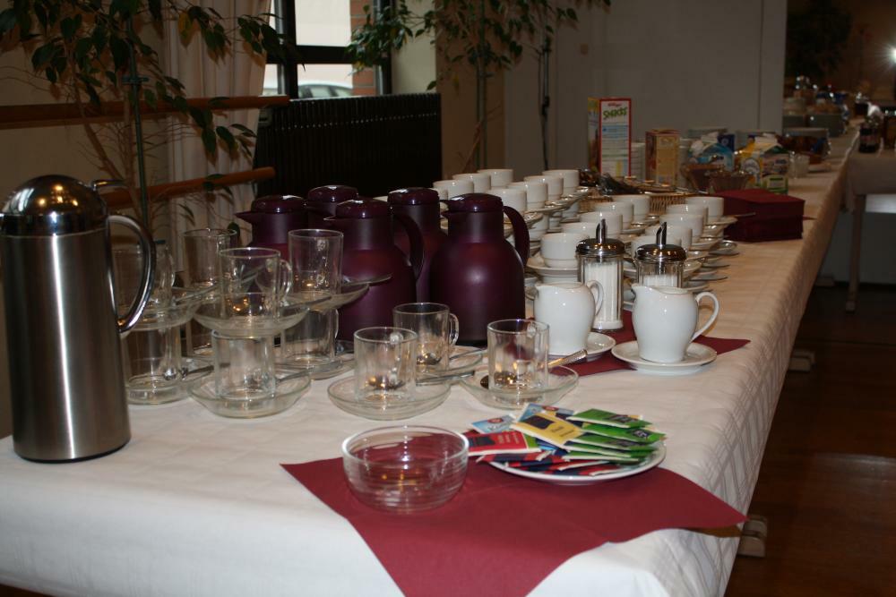 Nach den offiziellen Eröffnungsworten konnte zum gemütlichen Teil des Vormittages übergegangen werden und das reichlich gedeckte Buffet wurde mit großem Appetit gestürmt. Schnell fanden sich kleine Gesprächsgruppen zusammen und die Ausbilderinnen und Ausbilder hatten die Möglichkeit, sich auch einmal mit Kolleginnen und Kollegen aus anderen Bereichen auszutauschen oder auch einfach nur das leckere Frühstück zu genießen.