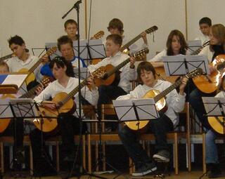 Das Gitarrenorchester der Musikschule Mannheim besteht aus ca. 15 jungen Gitarristinnen und Gitarristen im Alter ab 12 - 30 Jahren und zuweilen auch älter. Die stilistische Bandbreite des Repertoires umfasst alle Epochen von Barock bis zur Moderne, Popmusik und einem besonderen Schwerpunkt auf Spanischer und Südamerikanischer Gitarrenmusik. Dem Gitarrenorchester wurden bereits einige Werke von Komponisten gewidmet und brachte diese zur Uraufführung. Regelmäßig musizieren auch Solisten – z.B. Violine oder Violoncello – mit dem Gitarrenorchester. Das Gitarrenorchester hat eine CD aufgenommen und gibt regelmäßig Konzerte.