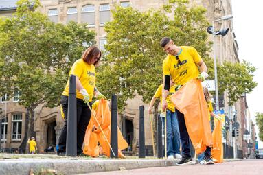 Ende September waren die Rhein-Neckar-Löwen mit etwa 90 Teilnehmenden am Schillerplatz und in dessen Umgebung im Einsatz für Mannheims Sauberkeit. Neben zahlreichen Fans griffen auch die Profis Jan Lindenchrone Andersen und Sebastian Heymann zu Greifzange und Abfallsack. Eine tolle Aktion, die wir gerne unterstützt haben.
