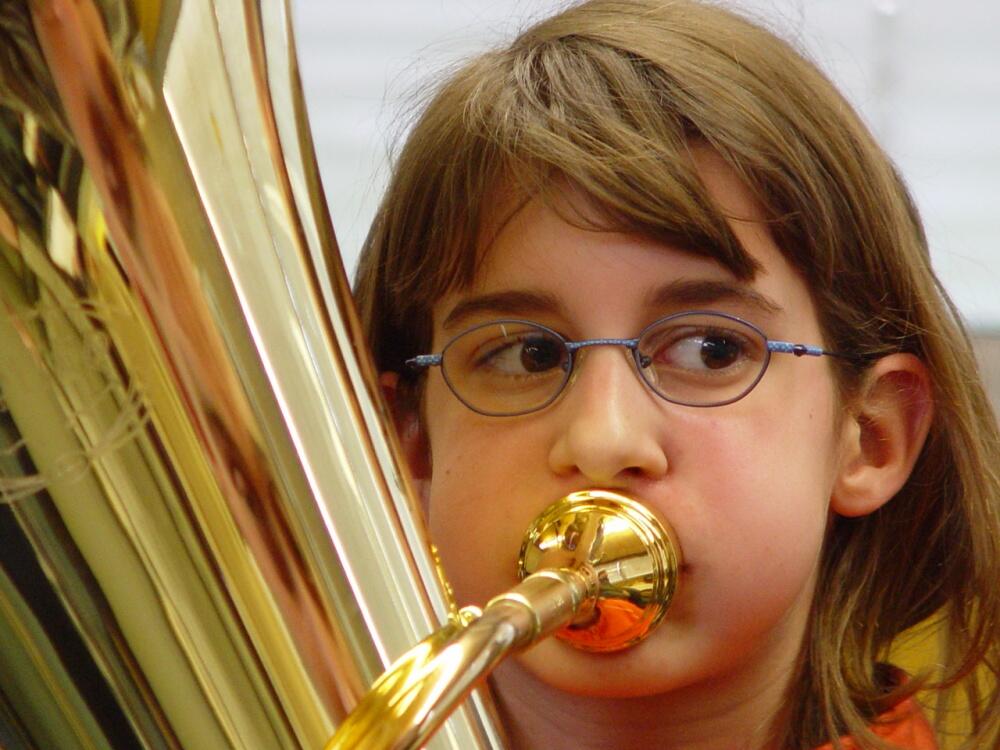 Bei den Blasinstrumenten unterscheidet man zwischen Holz- und Blechblasinstrumenten. Zu den Holzblasinstrumenten gehören Querflöte, Oboe, Klarinette, Saxophon und Fagott. Zu den Blechblasinstrumenten zählen Trompete, Waldhorn, Euphonium, Posaune und Tuba. Die meisten Blasinstrumente sind sehr vielseitig einsetzbar. Man kann darauf nicht nur klassische Musik spielen, sondern auch Unterhaltungs- und Jazz-, Rock- und Pop-Musik (was übrigens alles in der Musikschule unterrichtet wird). Schon 6-9 Monate nach der ersten Unterrichtsstunde ist häufig die Mitwirkung im Elementaren Bläserorchester möglich. Später locken dann das Sinfonische Blasorchester und zusammen mit den Streichern das Jugendsinfonieorchester der Musikschule.