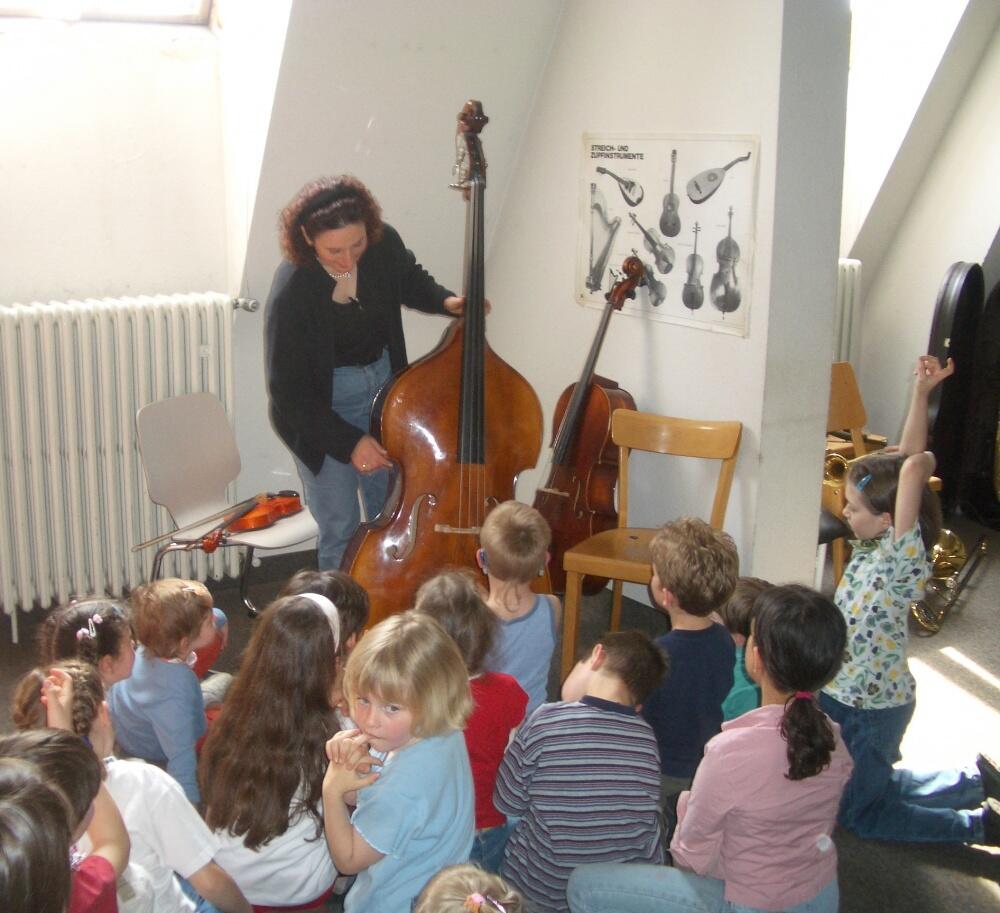 Zu den Streichinstrumenten zählen die Violine, die etwas größere Viola, das Violoncello und der Kontrabaß. Schon nach einem halben bis dreiviertel Jahr ist die Mitwirkung im Spielkreis oder im Vororchester der Schule möglich. Das Wunschziel der meisten Streicher ist die Mitwirkung im Jugendsinfonieorchester, nicht nur der Stücke wegen, die gespielt werden, sondern weil das Orchester schon richtige Konzertreisen unternimmt.
