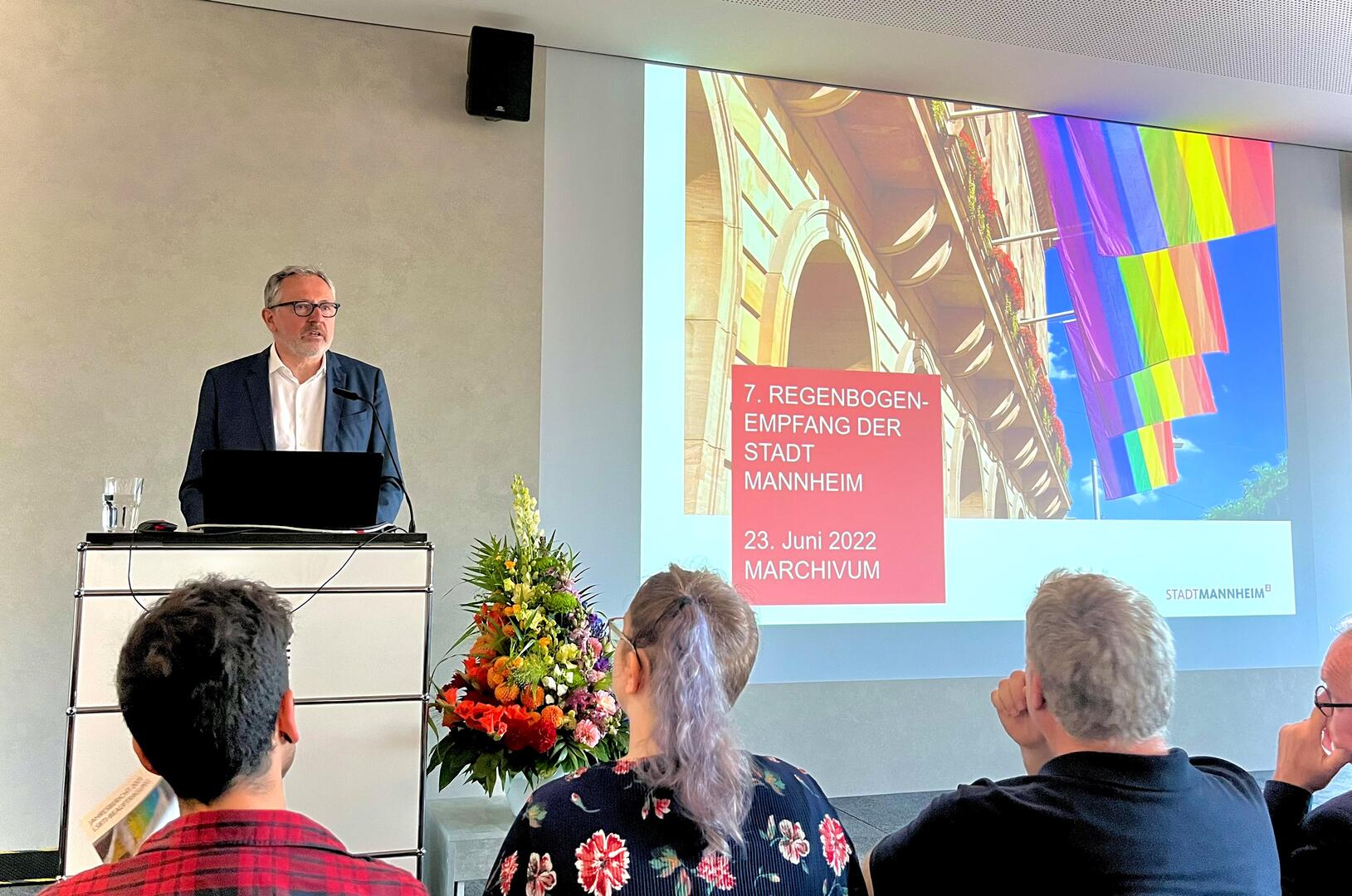 Oberbürgermeister Dr. Peter Kurz bei seiner Rede anlässlich des 7. Regenbogenempfang Stadt Mannheim 2022