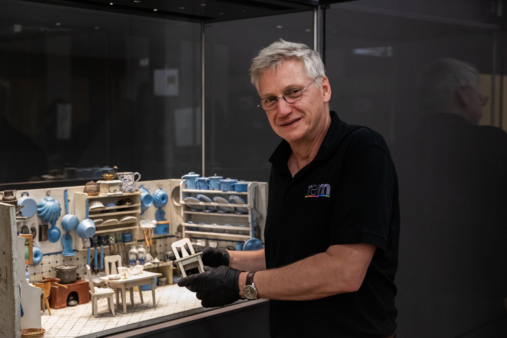 Restaurator Bernd Hoffmann-Schimpf legt bei einer Jugendstil-Küche letzte Hand an.