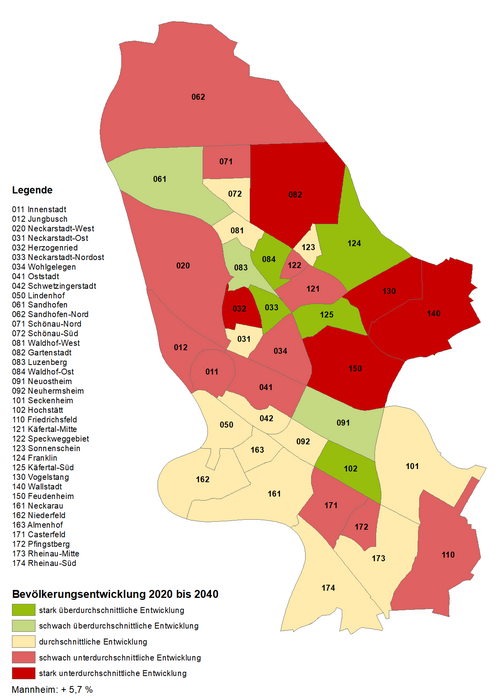 Die Bevölkerung in den Mannheimer Stadtteilen wächst bis zum Jahr 2040 unterschiedlich stark.
