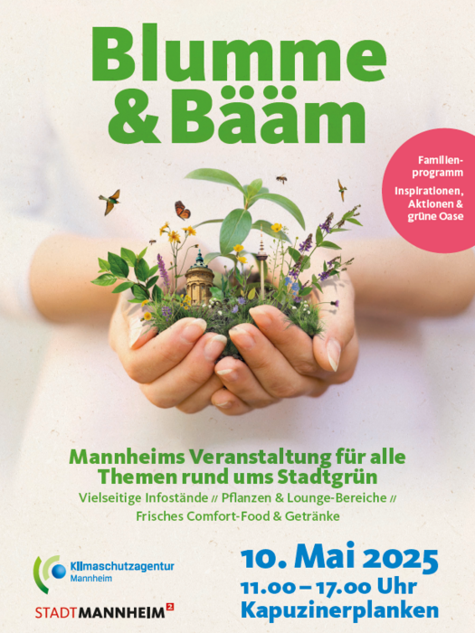 Zurück zur Übersicht Bild | 29. April 2025 - 12:00 Blumme und Bääm 2025 Mehr lesen Rechte Stadt Mannheim / Klimaschutzagentur