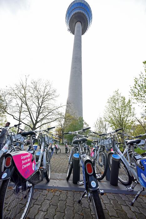 Eine neue BUGA-nextbike-Station steht am Fernmeldeturm.
