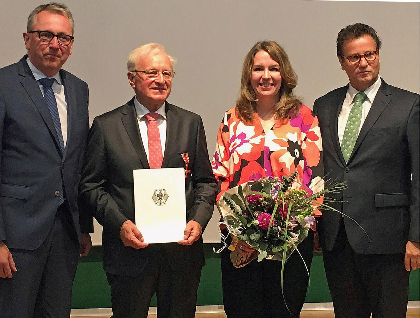 Unser Bild zeigt von links nach rechts: Oberbürgermeister Dr. Peter Kurz, Lothar Mark, Dr. Gabriele Mark, Minister Peter Hauk.