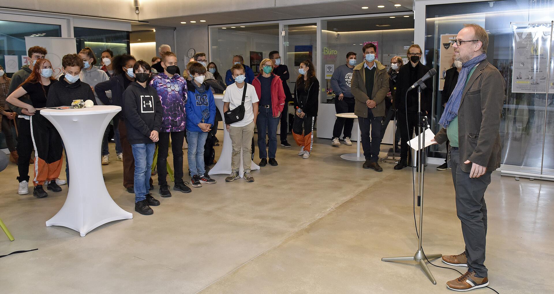 Bürgermeister Dirk Grunert betont bei der Eröffnungsfeier die Bedeutung des neuen Jugendtreffs Schwetzingerstadt