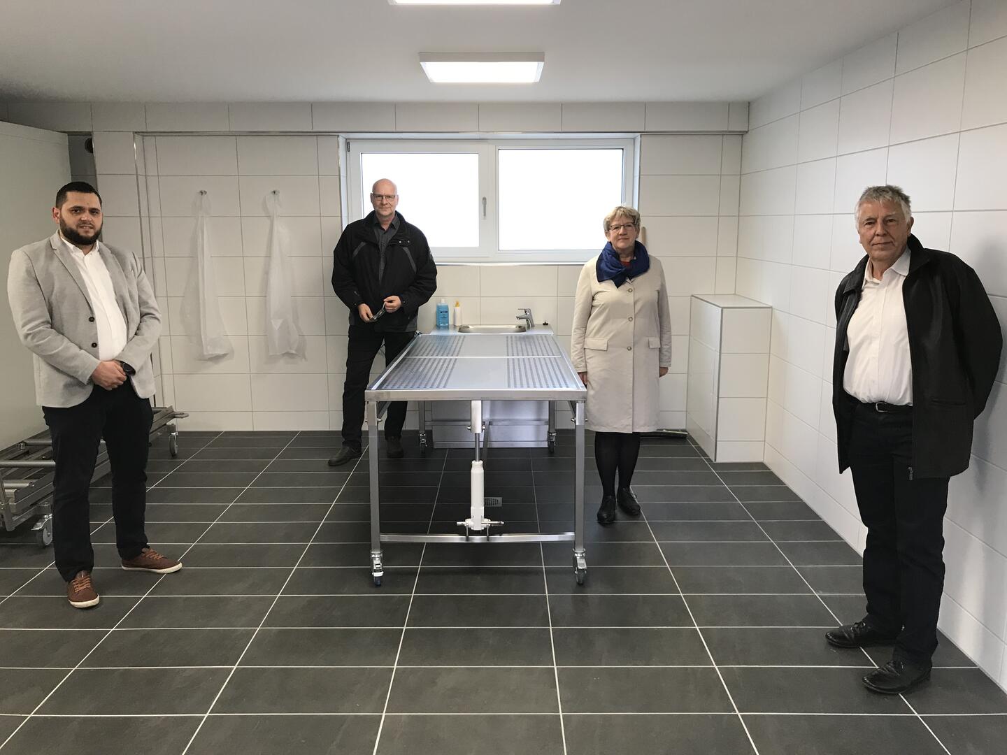 Rabit Kadrii vom Arbeitskreis Islamischer Gemeinden, Eigenbetriebsleiter Andreas Adam, Bürgermeisterin Felicitas Kubala und Architekt Matthias Schmeling