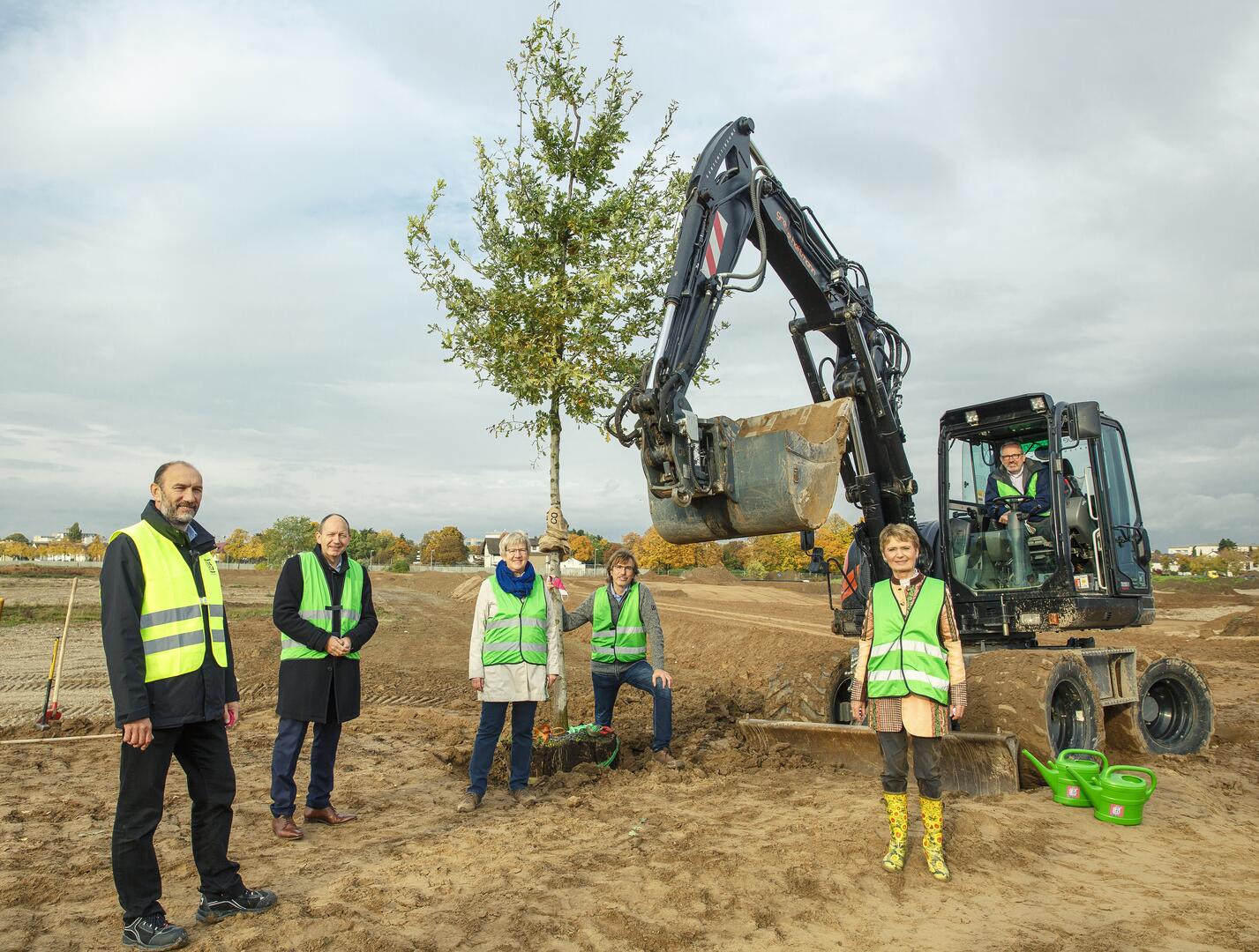 Michael Schnellbach, Christian Specht, Felicitas Kubala, Erhard Schollenberger, Friedlinde Gurr-Hirsch und Dr. Peter Kurz bei der Baumpflanzung
