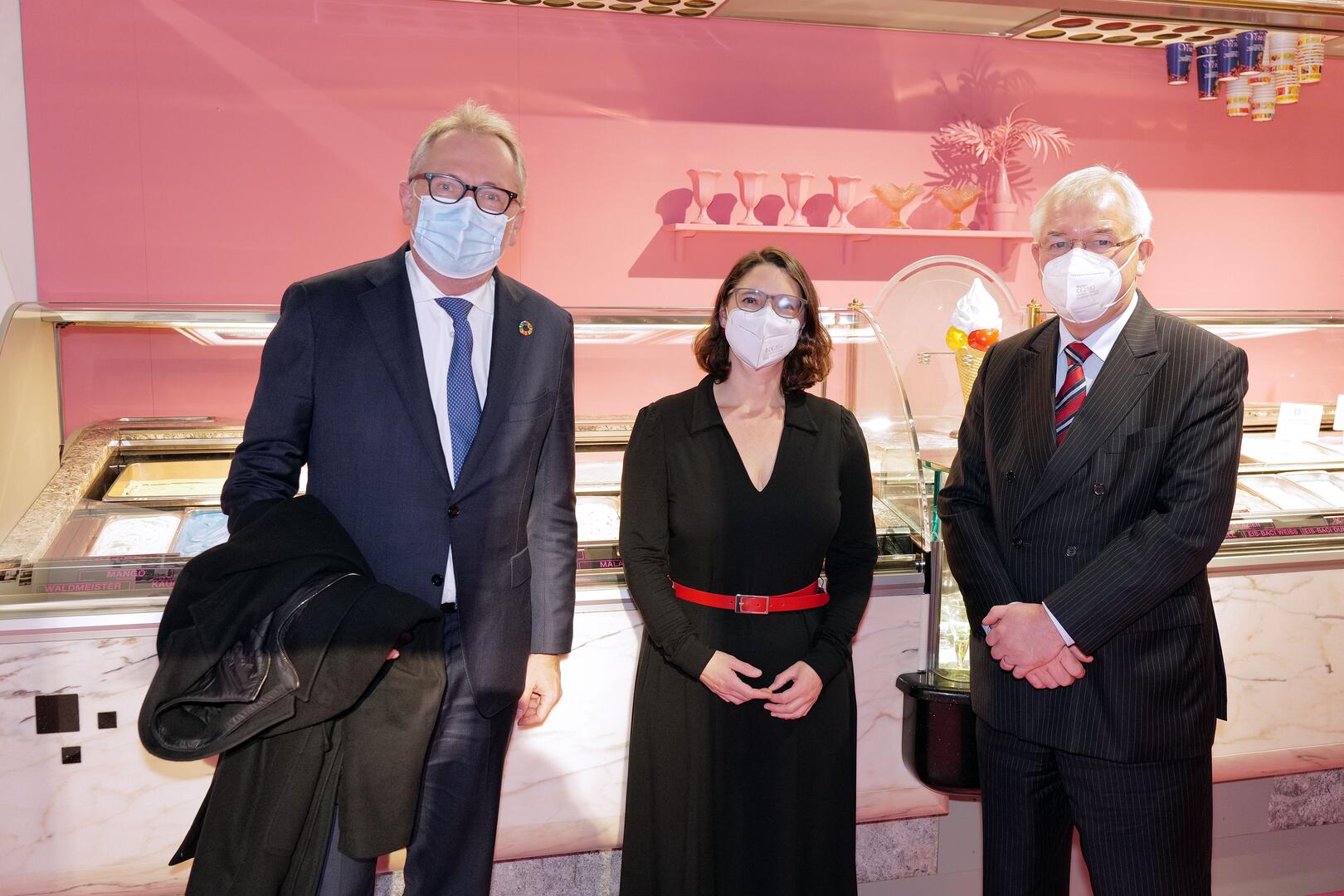 Unser Bild zeigt von links nach rechts: Oberbürgermeister D. Peter Kurz, Dr. Anne Mahn, die Kuratorin der Ausstellung und den Direktor des TECHNOSEUM, Prof. Dr. Hartwig Lüdtke