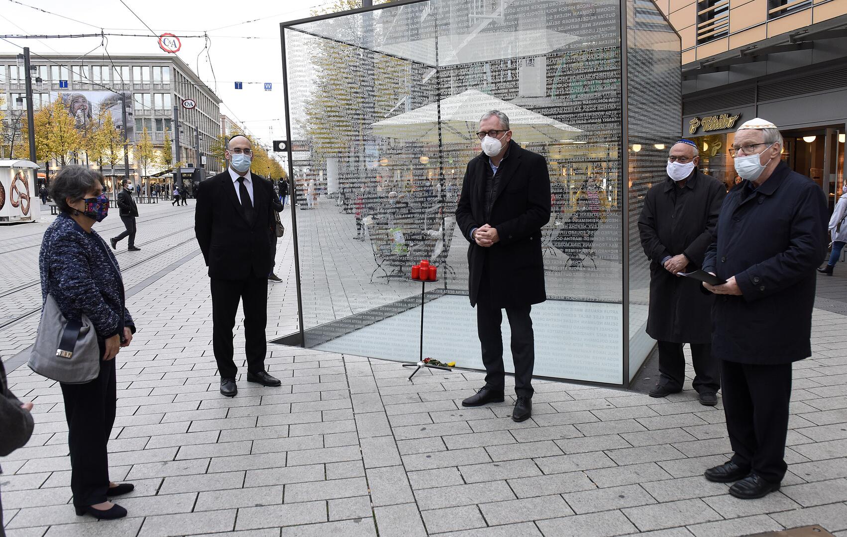 Unser Bild zeigt von links nach rechts: Rita Althausen, Vorsitzende der Jüdischen Gemeinde Mannheim, . Amnon Seelig, Kantor der jüdischen Gemeinde, Majid Koshlesan, ehemaliger Vorsitzender der Jüdischen Gemeinde Mannheim, Manfred Froese, geschäftsführender Vorsitzender der Gesellschaft für Christlich-Jüdische Zusammenarbeit Rhein-Neckar e.V und Oberbürgermeister Dr. Peter Kurz.