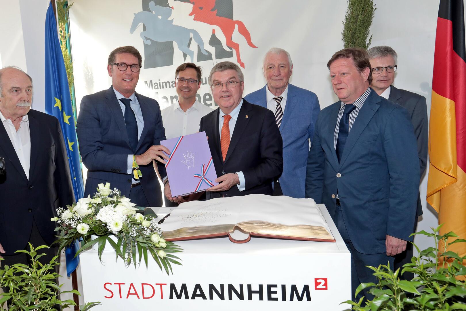 IOC-Präsident trägt sich ins Goldene Buch ein - Gruppenfoto