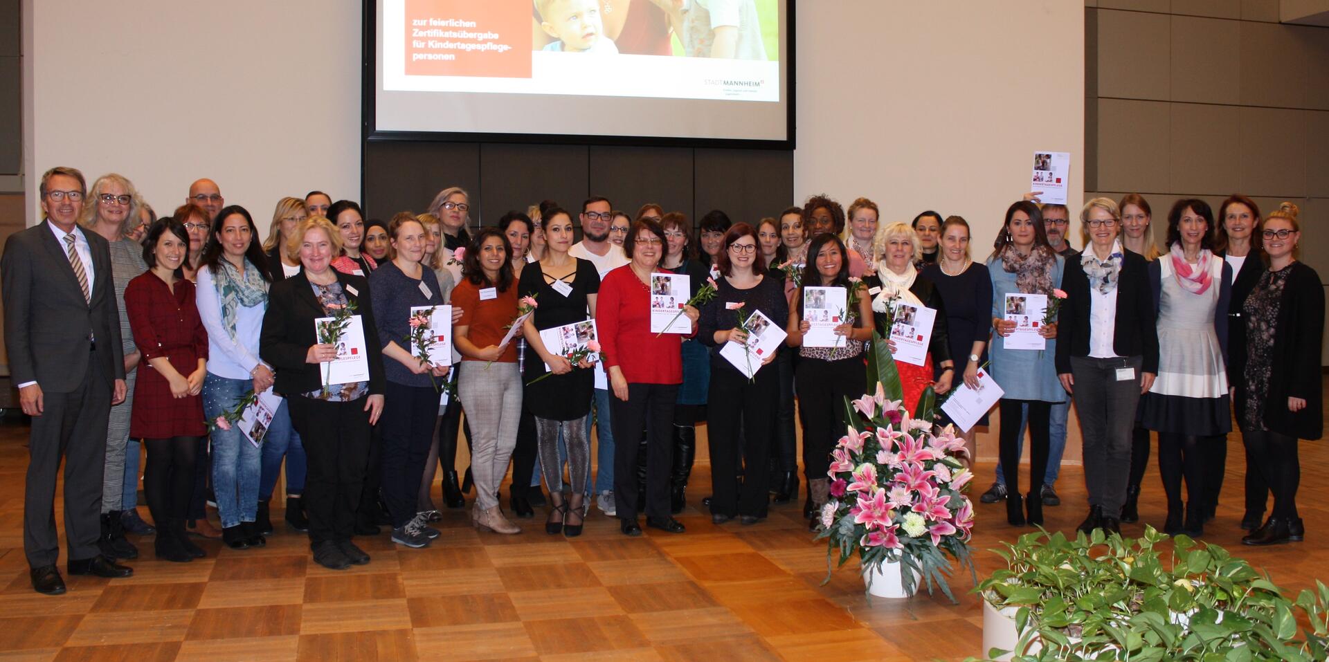 Feierliche Zertifikatsübergabe an 50 Tagesmütter und drei Tagesväter im Stadthaus.