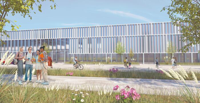 Das Herzogenriedbad soll um eine Schwimmhalle zum Kombibad erweitert werden. So soll der neue Eingangsbereich aussehen.