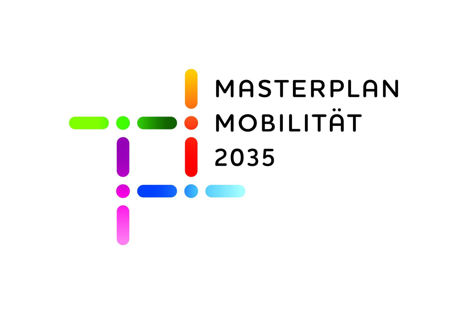 Das Logo für den Masterplan Mobilität 2035: Die quadratische Form wurde in Anlehnung an Mannheim als Quadratestadt gewählt, die Netzstruktur in verschiedenen Farben symbolisert die verschiedenen Verkehrsarten.