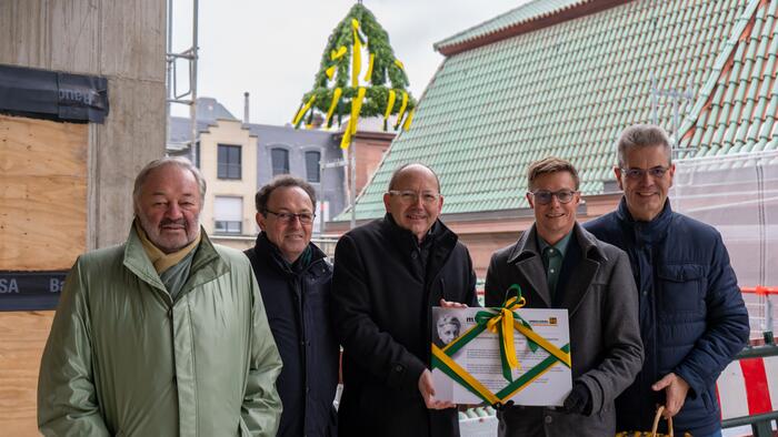 Unser Bild zeigt vonlinks nach rechts: Andreas Schmucker, Karlheinz Heffner, Oberbürgermeister Christian Specht, Bastian Fiedler und Carsten Südmersen