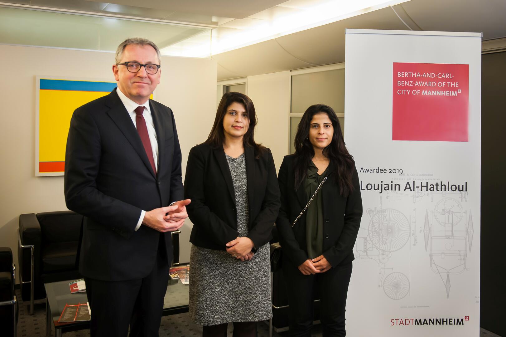 Oberbürgermeister Dr. Peter Kurz hat Alia und Lina Al-Hathloul in Brüssel getroffen (v. l.)