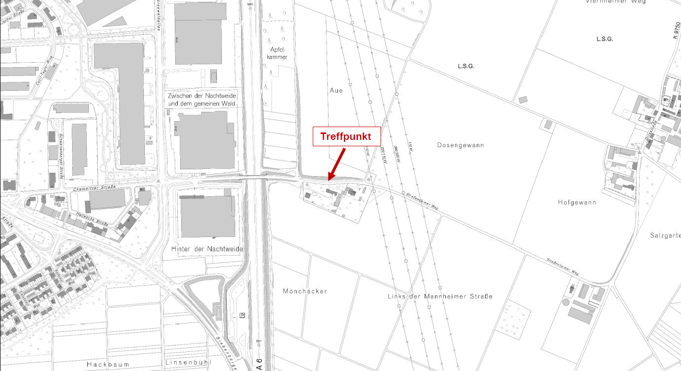 Treffpunkt der Feldhamsterauswilderung 2025: Straßenheimer Weg 181 – 183