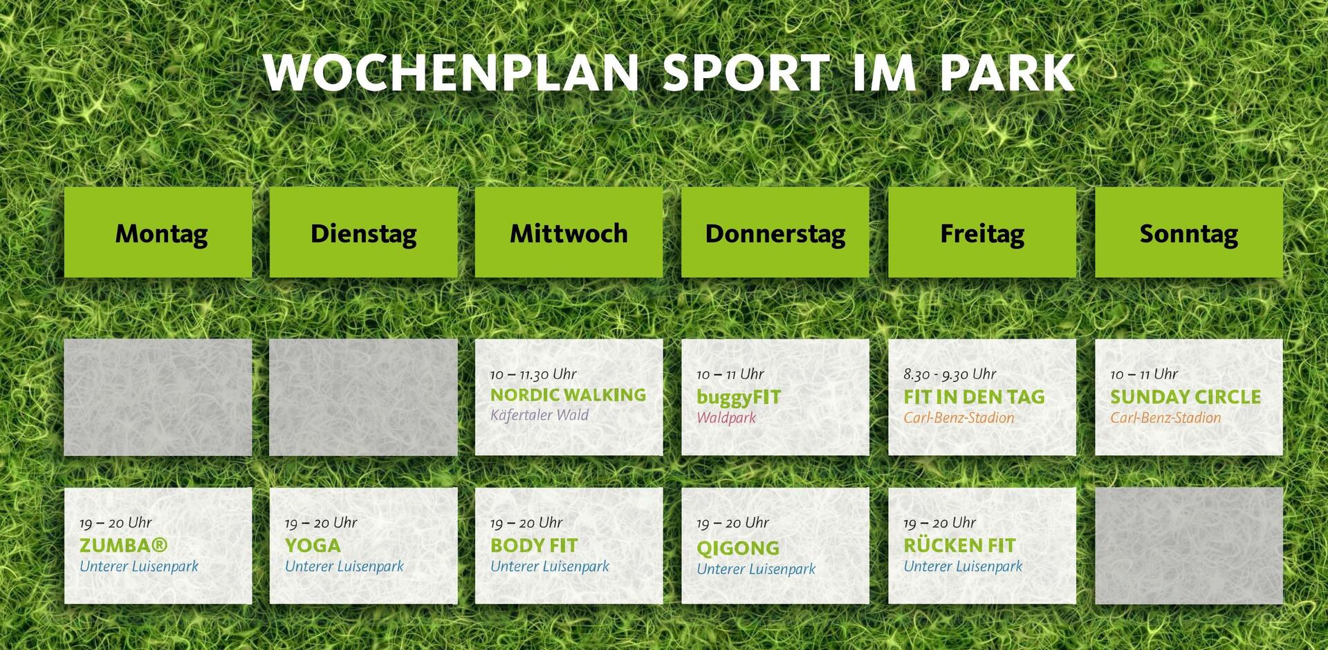 Zurück zur Übersicht Bild | 12. September 2018 - 11:00 Wochenplan Sport im Park 2018 Mehr lesen Rechte Stadt Mannheim Download SIP_2018_Wochenplan.jpg (1.96 MB)