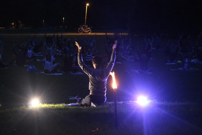 Sport im Park mit dem Secial "Yoga bei Vollmond" im Unteren Luisenpark.