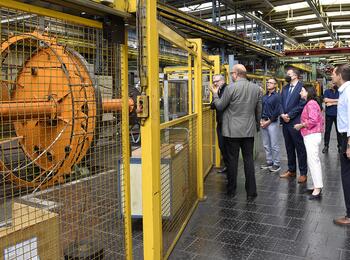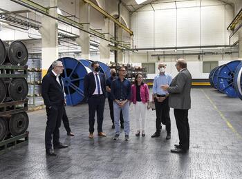 v.l.n.r. Oberbürgermeister Dr. Peter Kurz, Sebastian Ebert (Vertriebsleiter Südkabel), Wolfram Riegler (Betriebsratsvorsitzender Südkabel), Bürgermeister Ralf Eisenhauer, Christiane Ram (Leiterin des Fachbereichs für Wirtschafts- und Strukturförderung), Petar Drakul (Referent des Oberbürgermeisters), Dr. Johannes Kaumanns (Standortleiter Südkabel)