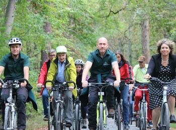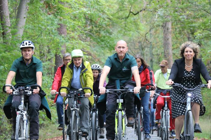 Bei dem Stadtteiltag besuchte Bürgermeister Riehle auch das Kulturhauses zu einem Gespräch mit Ute Mocker, Leiterin des Kulturhauses, (hier 3. von links) sowie verschiedenen Künstler*innen und Kulturschaffenden in Käfertal, wie den Vereinen Trommelpalast und Löwenjäger. Die Gruppe steht vor einem Ichthyosaurus des Kunst-Projekts "Der geschlossene Kreis" des Mannheimer Künstlers Hendrik Hackl (hier 4. von links).