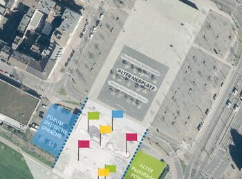 Der südliche Teil des Alten Meßplatzes wird unter Bürgerbeteiligung freiraumplanerisch neu gestaltet. Dort ist auch das Forum Deutsche Sprache geplant.