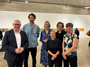 Unser Bild zeigt von links nach rechts: Oberbürgermeister Christian Specht, Prof. Dr. Wilfried Rosendahl (Generaldirektor der Reiss-Engelhorn-Museen), Robin Ebinger (cosmopop GmbH), Frank Eichhorn (cosmopop GmbH), Arne Braun (Staatssekretär im Ministerium für Wissenschaft, Forschung und Kunst Baden-Württemberg) und Dr. Torben Giese (Kurator der Ausstellung)