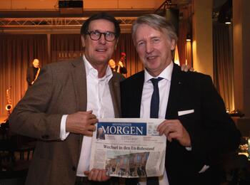Wirtschaftsbürgermeister und m:con Aufsichtsratsvorsitzender Michael Grötsch verabschiedet Geschäftsführer Johann W. Wagner in den (Un-)Ruhestand