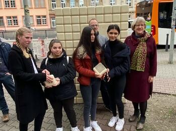 Michael Schnellbach, Geschäftsführer der Bundesgartenschau Mannheim 2023 gGmbH, und Oberbürgermeister Dr. Peter Kurz bekommen vom Minister für Ländlichen Raum und Verbraucherschutz, Peter Hauk MdL, im Beisein von Regierungspräsidentin Sylvia M. Felder den Zuwendungsbescheid über 20,2 Millionen Euro Fördermittel für die Bundesgartenschau 2023.