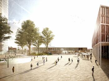 Visualisierung Lindenhofplatz mit Zugangsgebäude