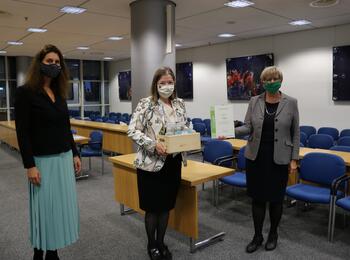Prof. Dr. Diana Pretzell, neue Bürgermeisterin für Bürgerservice, Klima- und Umweltschutz sowie technische Betriebe und Ralf Eisenhauer, neuer Bürgermeister für Bauen, Planung, Verkehr und Sport, zusammen mit OB Dr. Peter Kurz