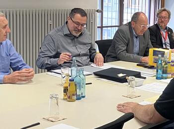 Michael Böhler und Jens Hölderle vom Team Wahlen, Oberbürgermeister Christian Specht sowie Christian Hübel, Leiter des Fachbereichs Demokratie und Strategie (von links)