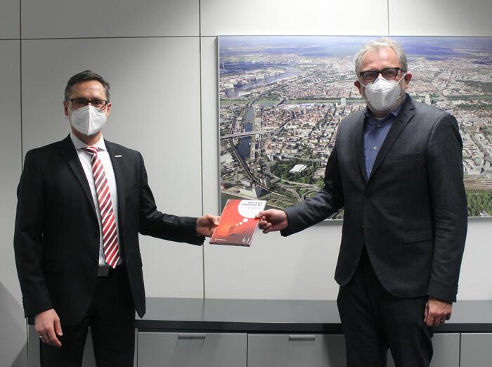 v.l.n.r. Peter Triendl (Geschäftsführer FnF), Christian Specht (Erster Bürgermeister), Prof. Dr. Diana Pretzell (Umweltbürgermeisterin), Caroline Golly (Klimaschutzagentur)