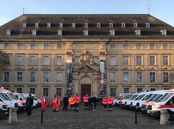 Alle Mannheimer Hilfsorganisationen waren heute mit einer groß angelegten Auslieferungsaktion daran beteiligt, 80.000 Schnelltests für die Beschäftigen in Schulen und Kitas auzulieferen: die Deutsche Lebensrettungsgesellschaft (DLRG) und der Malteser Hilfsdienst mit je einem Fahrzeug, die Johanniter-Unfallhilfe (JUH) mit sechs und das Deutsche Rote Kreuz (DRK) mit sieben Fahrzeugen plus je einer Einsatzleitung sowie der Arbeiter-Samariter-Bund mit acht Wagen.