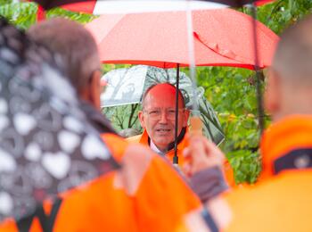 Oberbürgermeister Christian Specht beim Rundgang über die Behelfsbrücke der BBC-Brücke