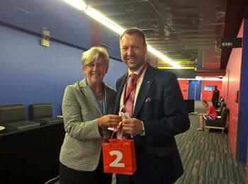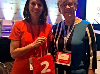 Umweltbürgermeisterin Felicitas Kubala (rechts) mit der Parlamentarischen Staatssekretärin des Bundesumweltministeriums, Rita Schwarzelühr-Sutter, auf dem ICLEI-Weltkongress in Montreal, Kanada.