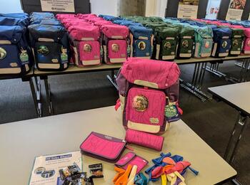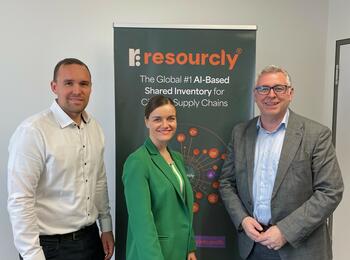 Ian Draxten und Helena Most (beide resourcly) mit Wirtschaftsbürgermeister Thorsten Riehle