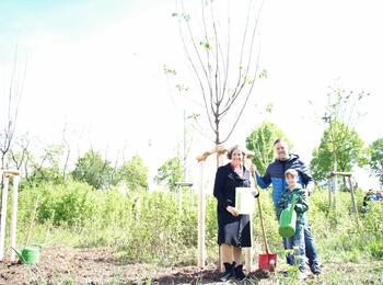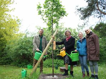 Von links nach rechts: Sebastian Eick, Vorsitzender SDW, Erste Bürgermeisterin Prof. Dr. Diana Pretzell, Andrea Potrafke und Cordula Lang, beide Vorstandsmitglieder GrünWerk Feudenheim