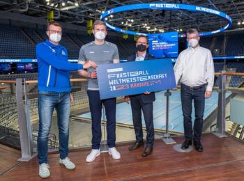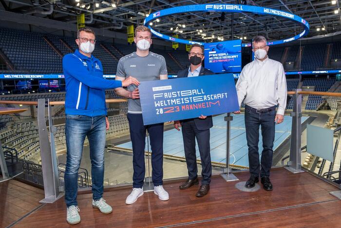 vlnr.: IFA-Präsident Jörn Verleger, Nationalteamspieler Patrick Thomas, Sport- Bürgermeister der Stadt Mannheim Ralf Eisenhauer, OK-Präsident Jörg Trinemeier