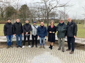 Erste Bürgermeisterin Prof. Dr. Diana Pretzell mit den Mitarbeitern des Eigenbetriebs Friedhöfe