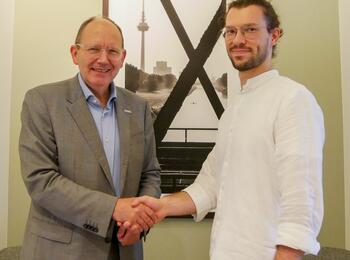 Mannheims OB Christian Specht (links) im Gespräch mit Stefan Naumer, Ansprechpartner der neuen Beratungsstelle "Wohnraum im Bestand".