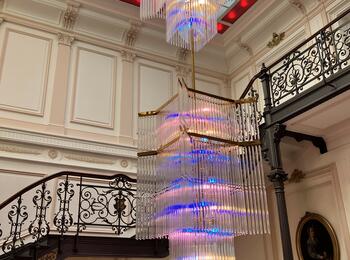 Der berühmte Leuchter in der Eingangshalle des städtischen Leihamts Mannheim.