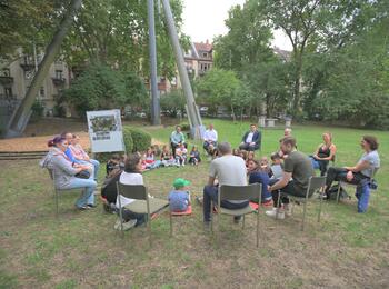 Thorsten Riehle begrüßt die Schüler*innengruppe aus Czernowitz. Insgesamt 14 ukrainische Kinder und Jugendliche aus Czernowitz, der ukrainischen Partnerstadt Mannheims, verbringen im Zuge des Jugendprojekts „Sommer ohne Krieg“ zwei Wochen ihrer Sommerferien in Mannheim.
