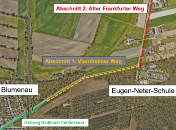 Der neue Geh- und Radweg an der Kreisstraße 9754 zur Eugen-Neter-Schule wird in zwei Bauabschnitten realisiert.