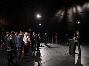Kulturstaatsministerin Claudia Roth und die baden-württembergische Kunstministerin Petra Olschowski übergeben Zuwendungsbescheid über 120 Millionen Euro für die Generalsanierung des Nationaltheaters Mannheim