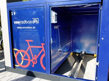 In den Fahrradboxen lässt sich ein Rad diebstahlsicher verwahren und ein E-Bike kann aufgeladen werden.