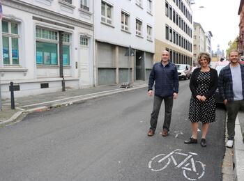 Bürgermeisterin Prof. Dr. Diana Pretzell mit Mitarbeitern des Stadtraumservice