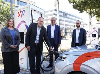 (v.l.n.r.): Natalie Waterboer, Geschäftsführerin Mannheimer Parkhausbetriebe, Erster Bürgermeister Christian Specht, MVV-Vorstand Ralf Klöpfer und Daniel Jung, Geschäftsführer MVV-Regioplan